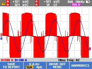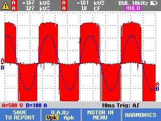 Z終,工作人員使用FLUKE-MDA 550變頻電機(jī)分析儀對故障產(chǎn)線變頻器進(jìn)行測量后發(fā)現(xiàn):
