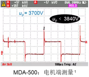 1140V電機(jī),沖擊電壓Z大允許值是3840V。MDA現(xiàn)場測量結(jié)果,沖擊電壓3700V。未超過電機(jī)的絕緣耐受范圍!